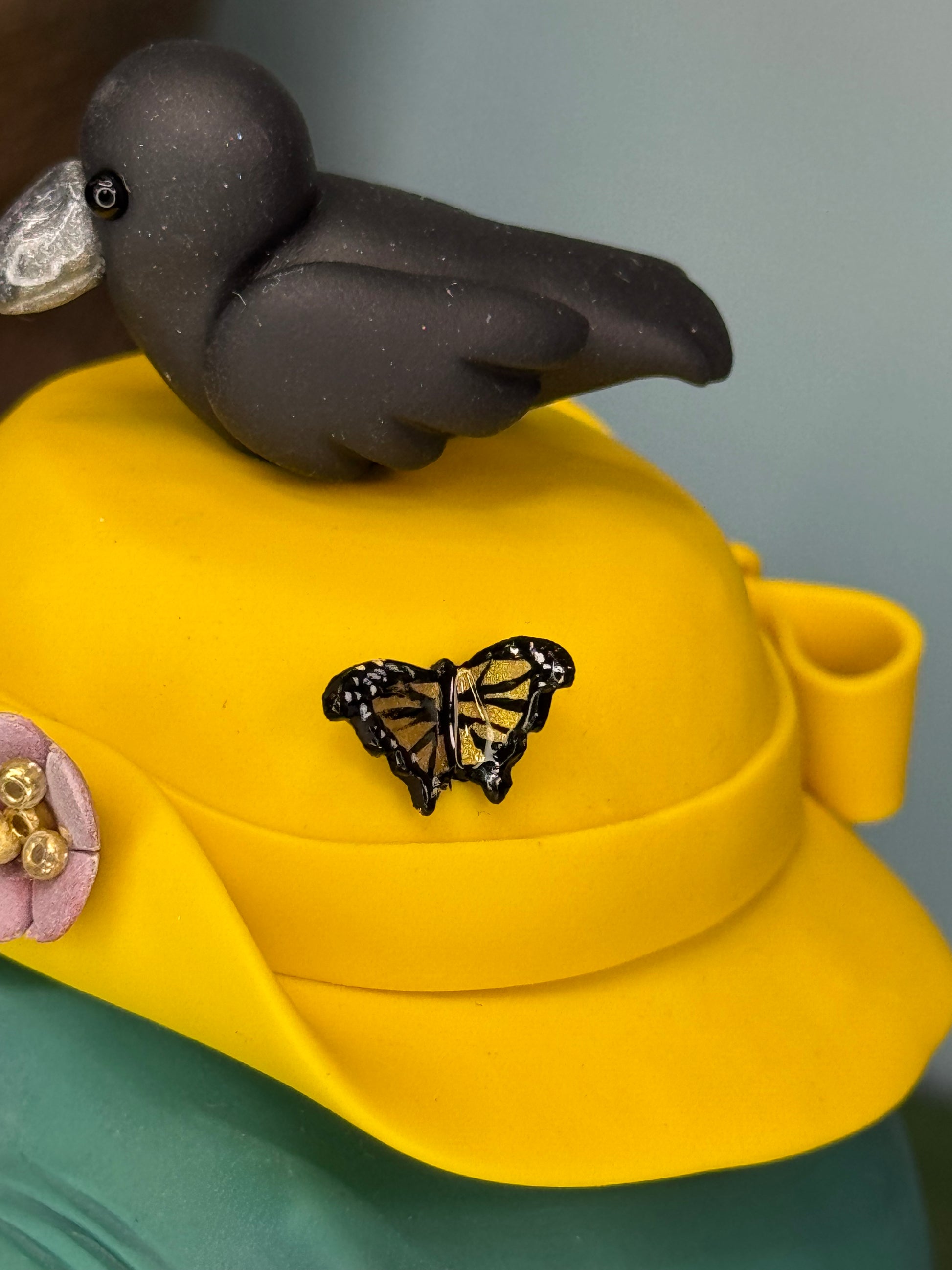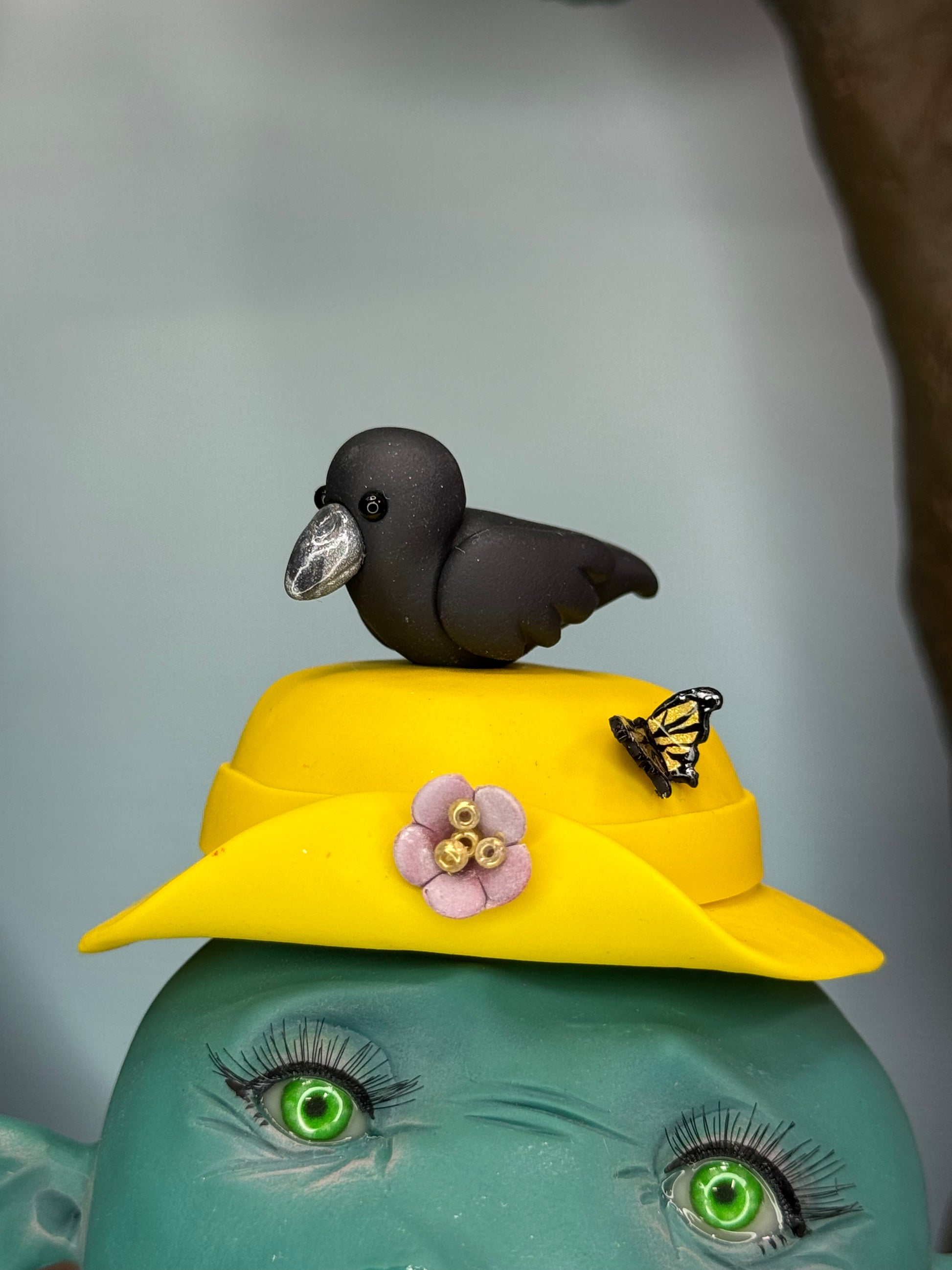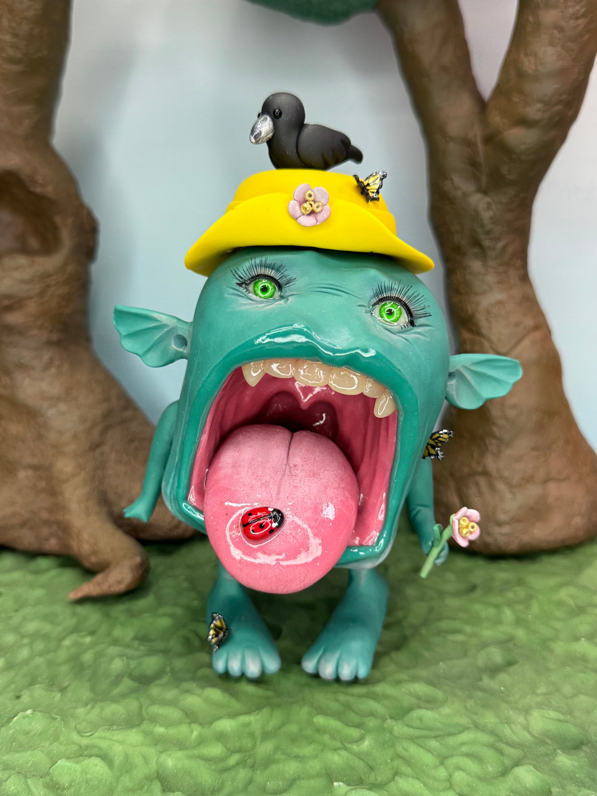 Berry was hand sculpted from Cosclay polymer clay over an aluminum foil armature.